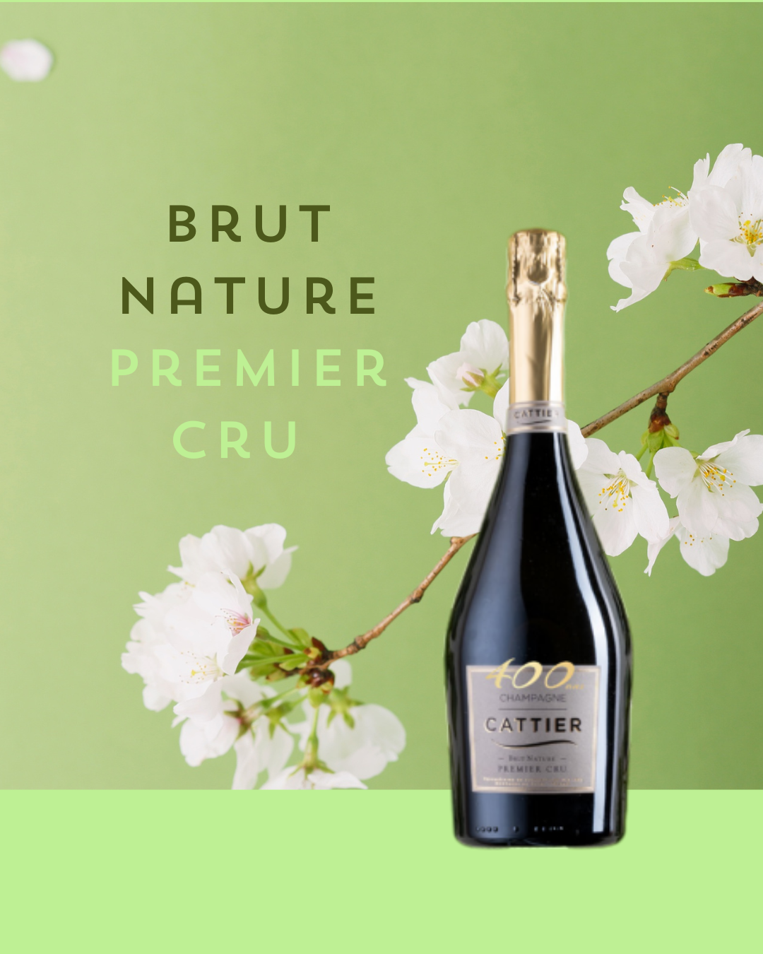 Champagne Cattier Brut Premier Cru. Con una bollicina fine e vivace e sentori intensi di fiori bianchi, fico e prugna. Al palato è fresco con un finale di nocciola, miele di acacia e frutti rossi.